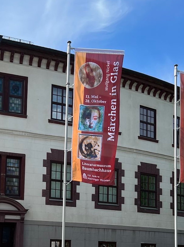Das Literaturmuseum Baumbachhaus gehört zu den Meininger Museen, Thüringen. Für die Ausstellung „Märchen in Glas“ des Glaskünstlers Wolfgang Nickel habe ich die Newsletter-Ankündigung, den 6-seitigen Flyer, das Plakat und die Museumsfahne entworfen.